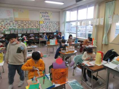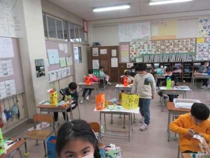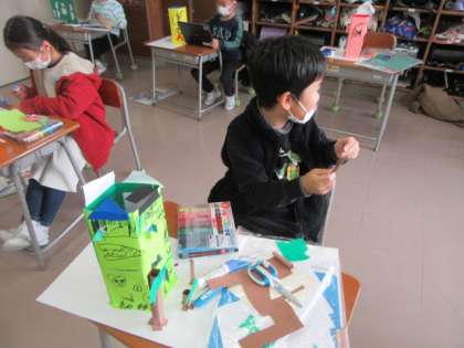 今日は、「2−1タウン」を仕上げました。色鮮やかで個性豊かなたくさんの家が完成しました。懇談会の際に、是非、ご覧ください。