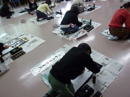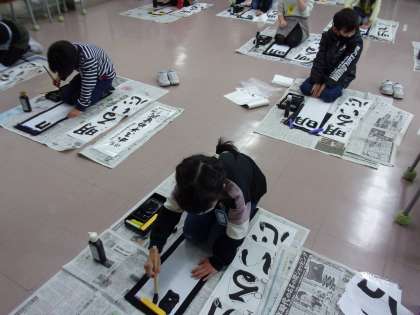 3年生 初めての書初め 公開日 2022/12/07 更新日 2022/12/07 3年生 大きな紙に、4文字、ひらがな・・・初めての毛筆での書初めは、なかなか難しかったようですが、みんながんばっています。