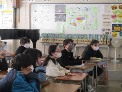 4時間目後半です。6年生は真剣な眼差しで、静かな心で、何かを考えています。さて、なんの時間でしょうか。