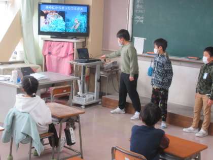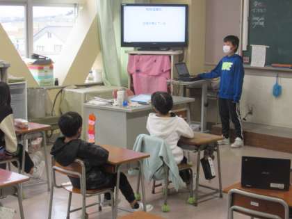 4年生 総合の発表 公開日 2022/12/08 更新日 2022/12/08 4年生 今日は、3年生に向けて発表しました・・・ 分かりやすく伝わるように! ドキドキでしたが、がんばりました! 3年生も真剣に聴いてくれました。ありがとう!