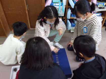 3年生 1年生の秋のおもちゃランドへ 公開日 2022/12/08 更新日 2022/12/08 3年生 遊びに行ってきました。まつぼっくりけん玉、落ち葉の洋服、どんぐりごま・・・どのおもちゃも楽しかったです!