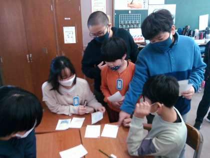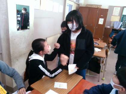 スタッフ(店員)とカスタマー(お客さん)に分かれて、商品を売ったり、買ったりするための表現を練習しました。