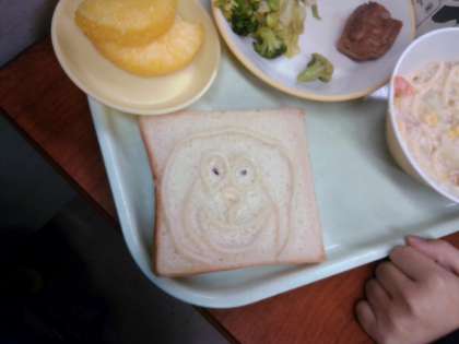 今日は、パンとパスタが出ました。子供たちのちょっとした遊び心が垣間見えました。