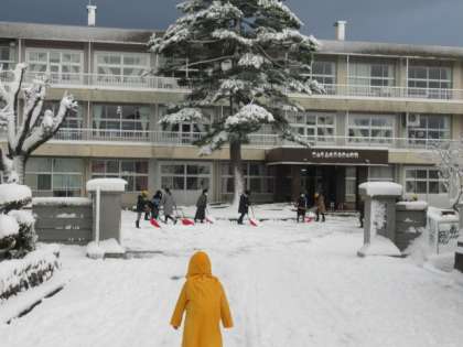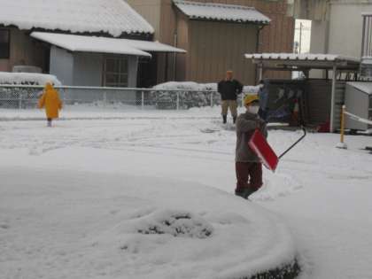 前庭の除雪が始まりました。 上級生が進んで行動してくれているようです。