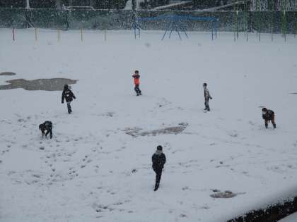 雪が積もりました。さっそく新雪に足跡をつけて遊んでいます。 とても元気です・・・