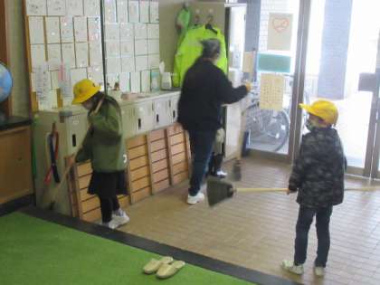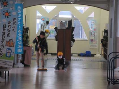 今日23日(金)は、終業式。 まず、ファミリー(縦割りグループ)清掃に取り組んでいます。