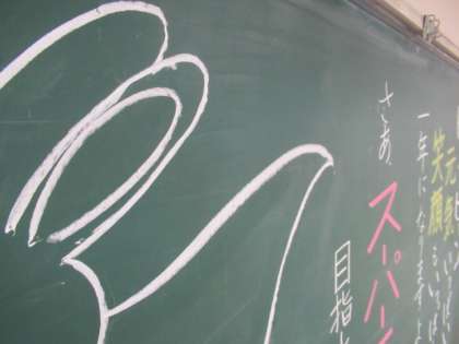 黒板には、担任からのメッセージが・・・ どこの教室でしょうか?・・・答えは、3学期に!