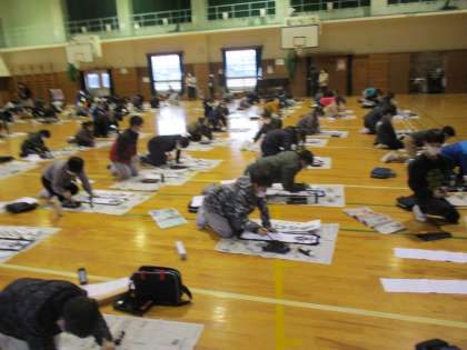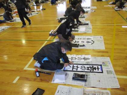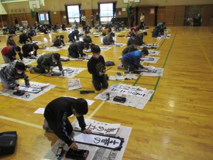 書初大会では、冬休みの練習の成果を存分に発揮して「春の立山」と書きました。