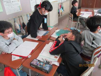 グループで話し合いながら、音読の仕方を考えました。
