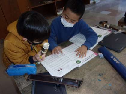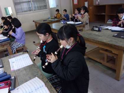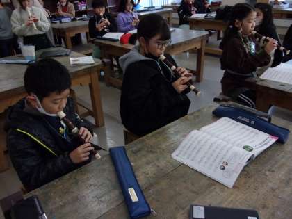 「エーデルワイス」の学習です。楽譜の中から「ミ」を探したり、リコーダーで吹いたりしています。