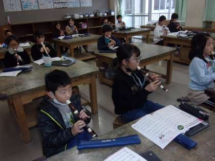 リコーダーやトーンチャイム、ミュージックベルで演奏しています。