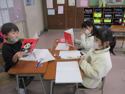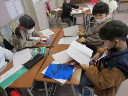 友達の「おすすめの本」を聞き合いました。知らなかった本をたくさん知ることができ、うれしそうでした。