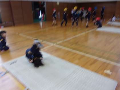 次は、マット運動です。今日は、後転に挑戦です。ダンゴムシのようにま〜るくなって回ります。