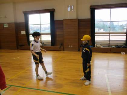 5年生に教えてもらいながら、なわとびの練習をしました。