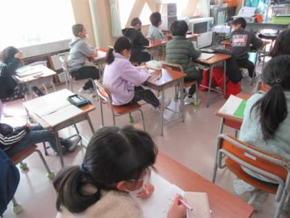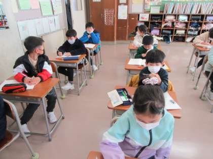 今日は、様子を表す言葉について学習しました。明日は、スイミーの時にも学習した「○○のような△△」の表現を使って文を作ります。