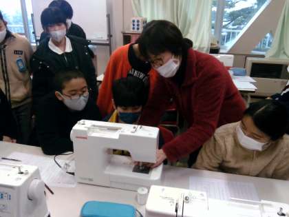 ミシンを使った裁縫の学習がスタートしました。真剣に取り組む子供たちの姿です。