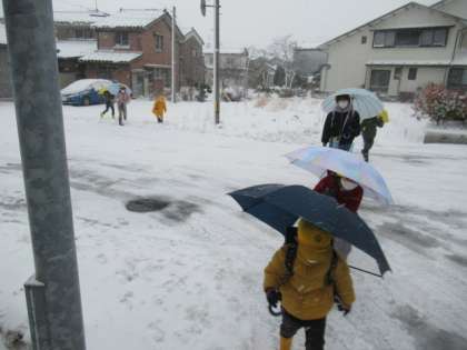寒い中、がんばって登校しています・・・
