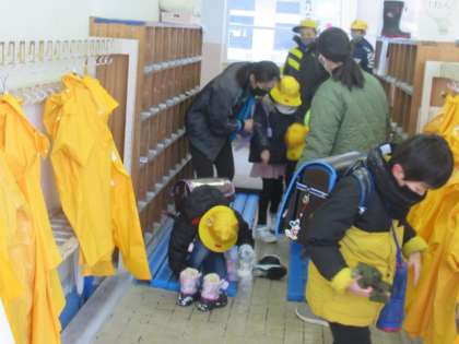 児童玄関では、担任や養護教諭が子供たちを出迎えて・・・