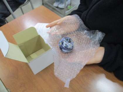 昨日、ガラス工房で作った作品が届きました。ぼくが想像していたのとは少し違っていたけれど、とてもきれいでよかったです。友達のも、とても良い感じにできていました。