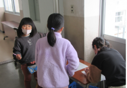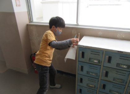 今日は「1mものさし」で色々な長さを測りました。明日も一緒にがんばろうね。