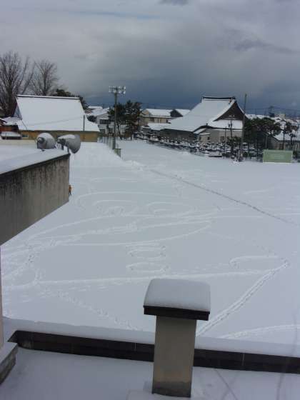 グラウンドにかわいいコックさんが! いつ、だれが描いたのでしょう?謎が深まります。