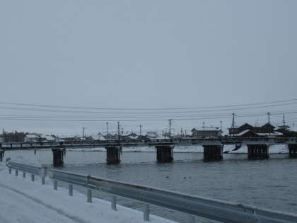(上)白岩川に架かる東西橋(上流方向)水面は穏やかです。
