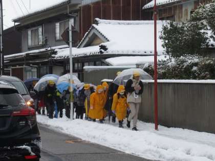 上級生が時々後ろを振り返り、下級生の様子を確認してくれています。