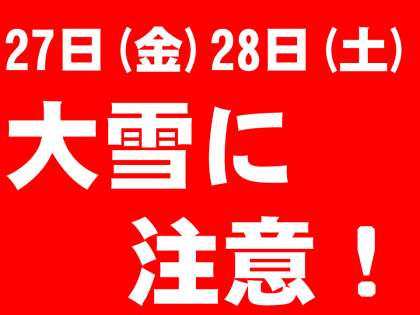 富山地方気象台によりますと、本日27日(金)夜のはじめ頃から28日(土)にかけて、発達した雪雲が同じところにかかり続けた場合には、平地を含めて大雪となるところがあり、警報級の大雪となる可能性がある、とのことです。