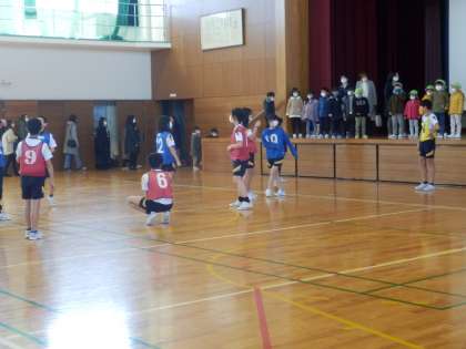 1月31日に体育でハンドボールをしました。ちょうど体育の時間に来年度の1年生が見学にきていたので、試合をみてもらいました。6年生らしいところを見せることができたと思います。(6年生 O・Rさん)