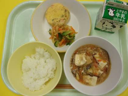 2月1日(水)今日の献立 公開日 2023/02/01 更新日 2023/02/01 給食室 ・ごはん ・牛乳 ・かにたま ・華風和え ・マーボー豆腐 ※11時45分、検食終了。異常ありません。 彩りもよく、美味しく出来上がっています。