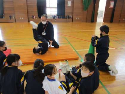 今日は、体育で「後ろ転がり」をしました。「マットを使った運動遊び」の一つです。お家でも一緒にやってみてください。
