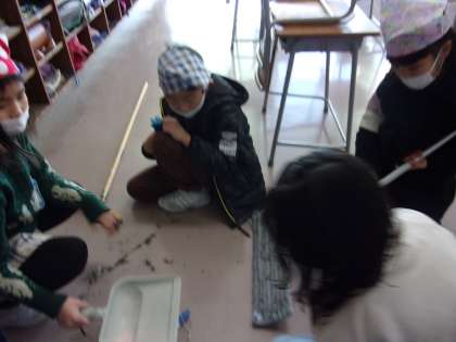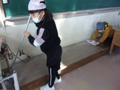 汚れを進んで見付け、冷たい水や手の汚れも厭わずに働いています。本当に清掃名人な子供たちです。
