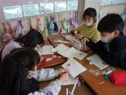 「安全マップ」づくりを始めました。登下校コースが同じ友達と協力し合いながら進めています。