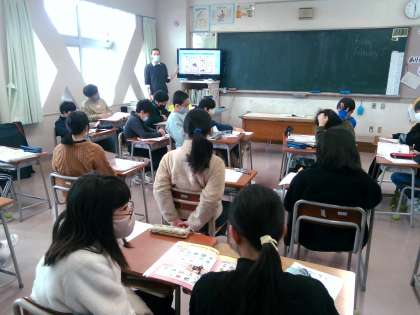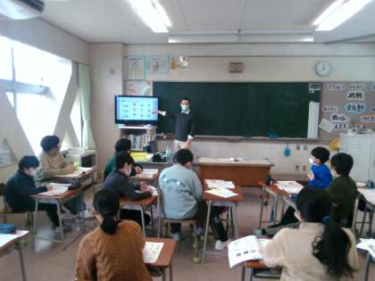 ALTの発声に続けて、子供たちの声が教室に響きます。やっぱりALTの発音は、自分の発音とは大違いです。練習しても真似できない領域(?)。毎週金曜日は、子供たちが本場?の英語に接する貴重な機会です。これからもレッツ!イングリッシュ!