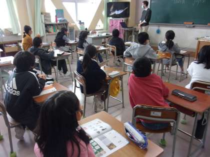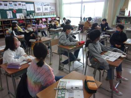 漢字クイズや足跡クイズに答えています。ヒントから想像を広げ考えています。