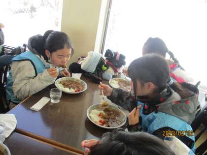 お昼はおいしく「めいけん」さんでカレーを食べました。少しピリ辛でとってもおいしかったですね。