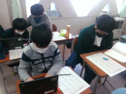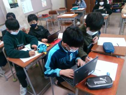 朝学習の時間、漢字読みの練習をしていて、分からないところを調べ始めた子供たち。あちこちでパソコンで検索をかけ始めました。