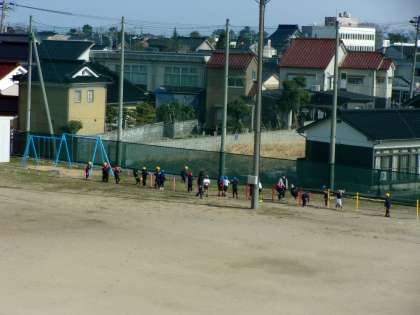 グラウンドで体育をしています。腕の力が付いてきたようです。