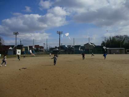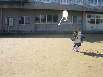 風をうまく利用しながら、楽しそうに凧をあげていました。