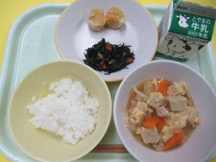 10日(金)今日の献立 公開日 2023/02/10 更新日 2023/02/10 給食室 ・ごはん ・牛乳 ・にんじんシューマイ ・ひじきと小松菜の炒め煮 ・高野豆腐の卵とじ ※11時40分、検食終了。異常ありません。 今日も美味しく出来上がっています。