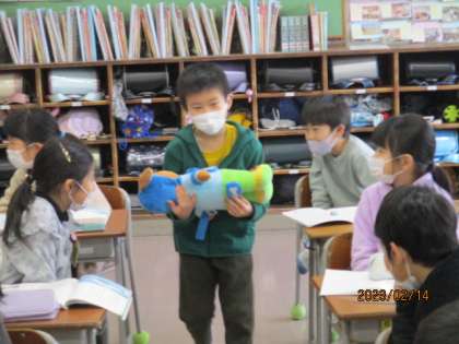 今日は、スーホが白馬を見つける場面のスーホの気持ちを考えました。白馬を見つけて「抱きかかえる」様子を、動きながら再現しました。スーホの気持ちを明日も考えよう。