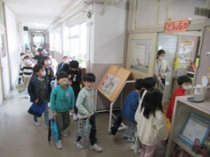 図書室へ向かう1年生。