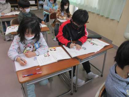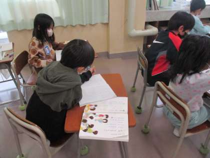 「これは何でしょう?ゲーム大会」に向けて、問題づくりをしました。隣のペアと相談しながら、難しい問題をつくっています。