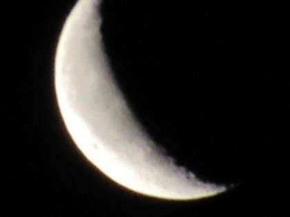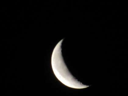 午前5時過ぎ、東の空・・・ 見事な「三日月」です! 太陽は、どこにいるのかな?