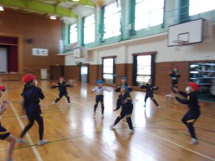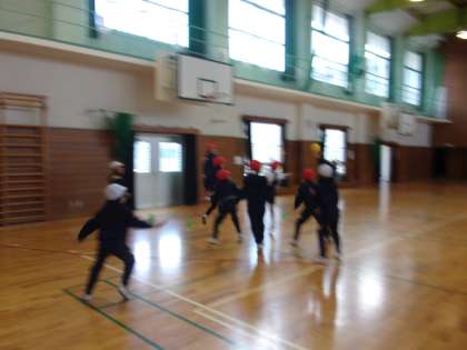 ポートボールのスタートです。チームで対戦してみました。