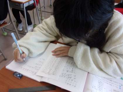 「表とぼうグラフ」の学習を進めています。正確に数えられるように、「正」の字を使って記録しています。