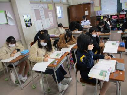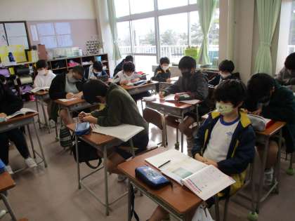 自分の考えをもつ時間です。真剣にノートに記入しています。
