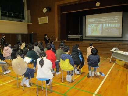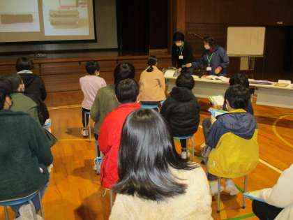 今日は、富山視覚総合支援学校から2名の講師をお招きして、特別授業を行いました。講師の先生方から、支援学校での生活やユニバーサルデザインの工夫等について、貴重なお話をいただきました。
