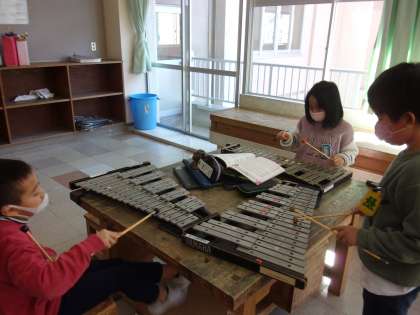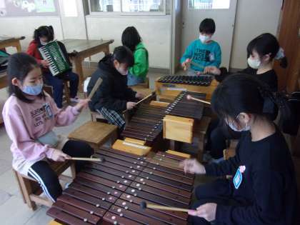 すてきな演奏目指して、前の時間の振り返りを生かして練習しています。