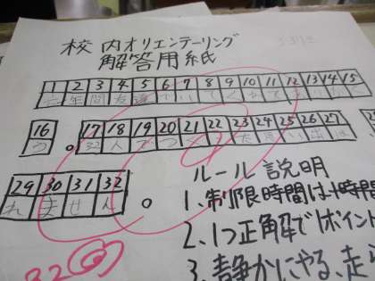 昨日、6時間目に校内オリエンテーリングをしました。僕は、企画する側でしたが、みんなが楽しそうにやっている姿を見ると嬉しくなりました。みんなの思い出に残ったならよかったです。